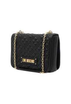 Borsa trapuntata Love Moschino nera a tracolla on dettagli in oro.